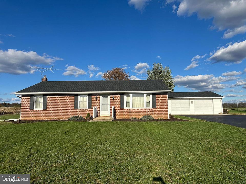 NICE RANCHER IN THE COUNTRY ON ALMOST 2 ACRES! This charming rancher offers beautiful views of the surrounding farmland and features 3 bedrooms, 3 bathrooms, a spacious living room, dining room, kitchen, and convenient laundry area. The full basement provides even more possibilities, including a huge family room, a room perfect for an office, and a potential workshop, along with plenty of storage space. Outside, you’ll find a detached 2-car garage and a paved circle driveway, adding both convenience and curb appeal. Enjoy peaceful country living with room to grow — don’t miss your opportunity to make this home yours! This property will be offered at auction on Thursday, December 4, 2025, at 3:00 PM. The List price in no way represents a minimum, starting, or acceptable bid.