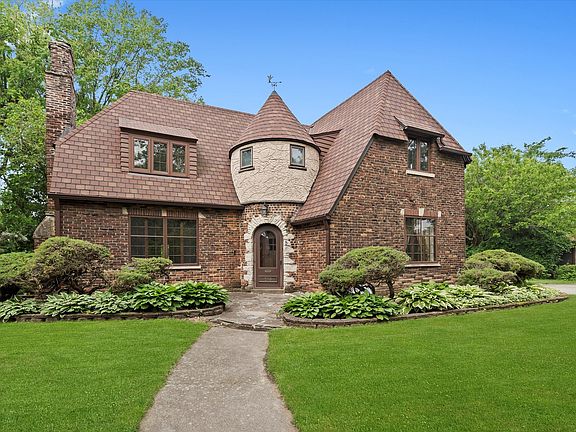 ONCE UPON A TIME...Visualize your very own fairytale ending in this HISTORIC 1929 "Country Club" estate! Lovingly restored to its original glory, this 3 bedroom 1.5 bath "mini-mansion" boasts over 2,900 finished sq ft; including a Florida room w/ HEATED FLOORS, partially finished walk-out basement & finished garage LOFT! Impressive curb appeal is an understatement, featuring a castle-style turret, lavishly landscaped gardens & a large FENCED IN YARD that shows like a park; (nearly half an acre; 2 pins). Meticulously restored plaster walls, custom Travertine tile, gorgeous Brazilian walnut floors & more. French doors lead to the formal dining room w/ crown molding & granite windowsills. BRAND NEW KITCHEN is a chef's dream with new cherry cabinets, QUARTZ counters & STAINLESS appliance package! Cozy up in front of the newer gas fireplace; or venture out to your oversized FLORIDA ROOM w/ EIGHT SETS of sliding doors, heated floors & wrap around deck! Perched under the pergola on a flagstone patio, enjoy the HOT TUB & sounds of nature! WALK OUT BASEMENT features a FINISHED family room & large utility/laundry room with workbench area & plenty of storage space. Efficient boiler heat (replaced approx. 7-8 yrs ago), plus 3 MINI SPLIT AC units, & updated 200 amp service. NEW ROOF in 2017 (Corning 30 yr shingles); flat roof over sun room replaced 1 yr ago. Covered breezeway leads to 2 car attached garage w/ exposed brick walls & walk-up staircase to FINISHED BONUS LOFT w/ hardwood floors & wainscotting; perfect for a home office! New concrete driveway in 2015. MINT condition historical home, unlike anything on the market, is ready for its next chapter!