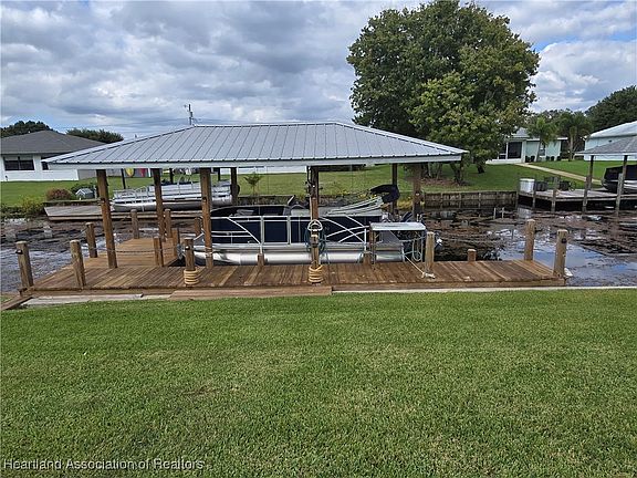 Super cute, furnished, Lake June canal home with dock & boathouse! Lots of great updates throughout such as luxury vinyl plank & tile floors (no carpet), 2022 roof, 2024 AC and 2022 seawall. Wonderful galley style kitchen with granite countertops, stainless steel appliances new in 2022 and window over sink facing the canal. Soak in the canal views while enjoying your meals in the cozy dining room and the spacious, air-conditioned Florida room (remote controlled AC wall unit). Spacious master bedroom with double closets and a nice ensuite featuring walk-in tile shower with modern glass doors. With 2 other bedrooms, you'll have space for guests, family or an office/hobby room. Guest bathroom has a tile shower with tub and linen closet. Big backyard space with patio, great for grilling, and a large shed. Deep garage with skeeter beater, washer & dryer included, plus lots of parking space with an extra-wide driveway. This move-in ready home is calling for it's new owner to enjoy!