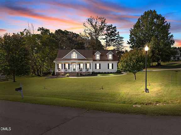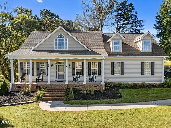 Charming Traditional Home on a PRIME CORNER LOT with FABULOUS SCREENED PORCH! Welcome to this beautifully maintained 3-bedroom, 2-bath traditional home, ideally situated on a picturesque corner lot in the highly sought-after Timberlake Meadows subdivision—one of the few neighborhoods in Timberlake with city water access. Enjoy a peaceful setting with the convenience of easy access to Highway 501, offering a quick commute to Durham, RTP, and surrounding areas. From the moment you arrive, you'll be impressed by the stately columns framing the inviting front porch. Step inside to a light-filled open floor plan featuring a spacious great room with gas-log fireplace, beautiful crown and chair moldings and seamless flow into the dining area and kitchen—perfect for everyday living and entertaining. The grand primary suite is a true retreat with a large walk-in closet and luxurious en suite bath, complete with double vanities, a soaking tub, and a separate shower. Upstairs offers a large bonus room—ideal for a playroom, home office, or guest space—as well as a generous unfinished room perfect for storage or future expansion. The real showstopper is the enormous screened-in porch, built for year-round outdoor living. This incredible space features a custom bar (with built in gas heat on top), reclaimed wood walls, a soaring cathedral ceiling, and a large wood-burning fireplace—the perfect setting for cozy nights or entertaining guests. Additional highlights include a fenced backyard, storage building, children's playset, and a desirable location that blends charm with commuter convenience. Don't miss this rare opportunity to own a home that has it all—space, style, and an unbeatable location