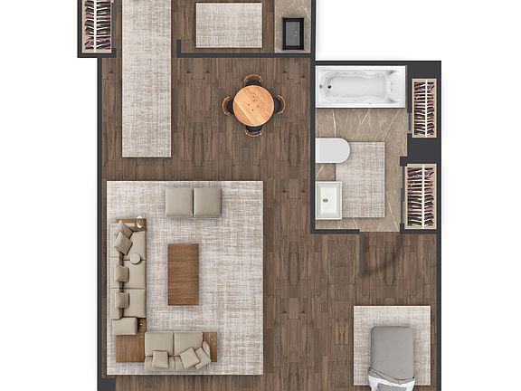Spacious alcove studioMarble tiled bathroomHardwood floors