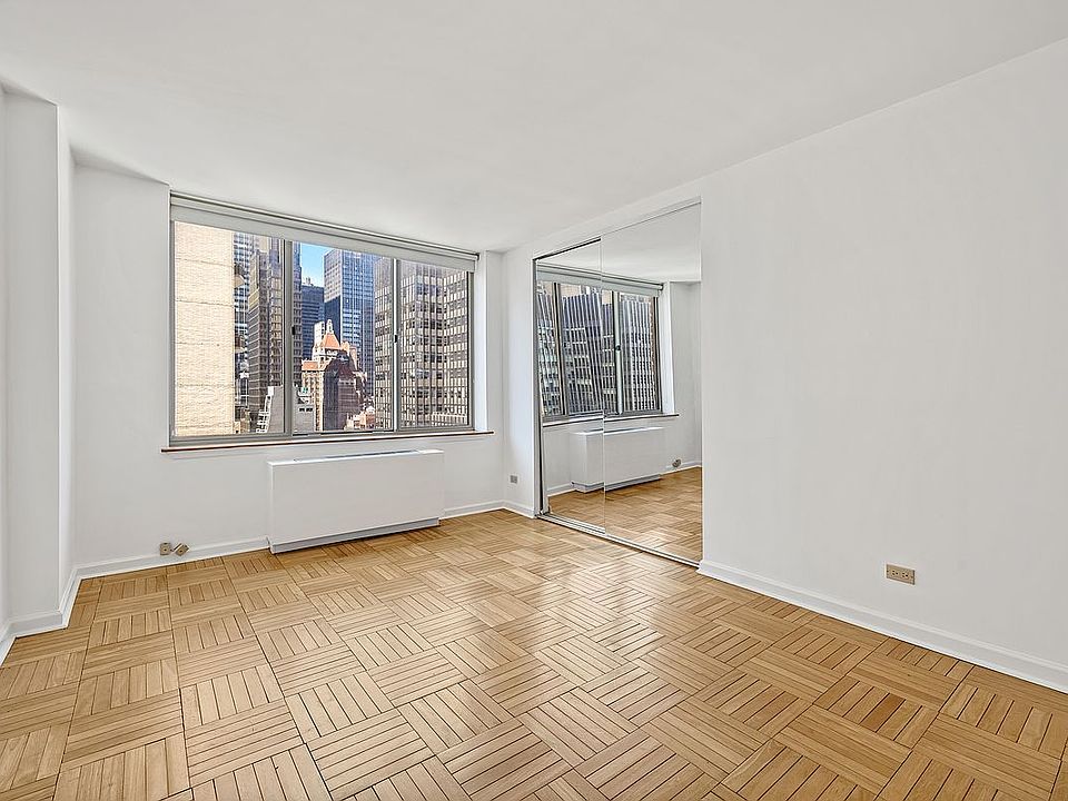 This high-floor corner two-bedroom, two-bathroom residence at The Club at Turtle Bay features a thoughtful split layout with open north and west exposures, offering sweeping city views and abundant natural light throughout. The home includes a private balcony, central air conditioning and heating, hardwood floors, and oversized windows in every room-including the kitchen. A dishwasher and ample cabinet space complete the windowed kitchen, and generous closet space is found throughout. Installation of an in-unit washer and dryer is permitted with board-approved plans. Residents of The Club at Turtle Bay enjoy full-service amenities including a 24-hour doorman and concierge, a landscaped roof deck with panoramic skyline views, a resident Sky Lounge, a large windowed laundry room, live-in resident manager, bike storage, and storage room (waitlisted). The building is conveniently located near Grand Central Terminal, with access to restaurants, shops, and multiple transportation options. Cats are allowed; no dogs permitted.