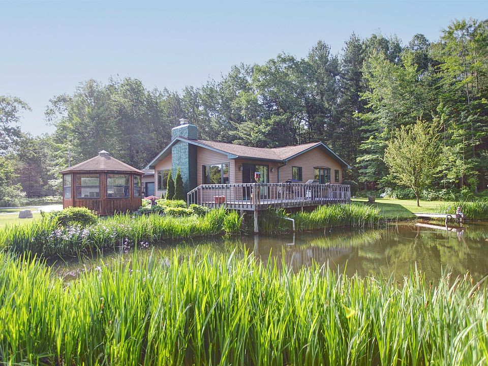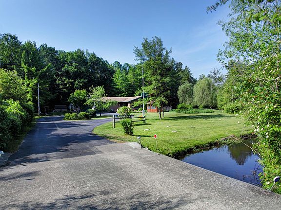 Hidden oasis that combines the quiet and beauty of nature coupled with a location that is mere minutes to downtown! The moment you drive over the private bridge onto this property you will understand that magic that exists here - a beautiful home surrounded by lovely landscaping and a charming gazebo, with 345' of frontage on Mitchell Creek that gently flows alongside a private pond, all encircled by mature woods. Highlights of the home include main-level living with two living areas (one with a fireplace), a well-equipped kitchen (with granite counters and a peninsula bar) and dining area overlooking the pond, a main-level primary suite and laundry room, Corian counters in the baths, and central air. The full-length deck perches on the edge of the private pond, for the most captivating setting for meals and entertaining outdoors. The pond is stocked with bluegill and pan fish, and when the salmon run in late summer you'll see them swimming upstream in the creek for easy catching. Even though the property is set across the road from the convenience of Costco, you'd never know it with the excellent buffer provided by the woods. Dining, shopping, schools, and beaches are just minutes away from your front door. The next owner of this spectacular property will be sure to feel honored to be the new caretaker of this one-of-a-kind setting. BRAND NEW FURNACE AND A/C IN 2025!