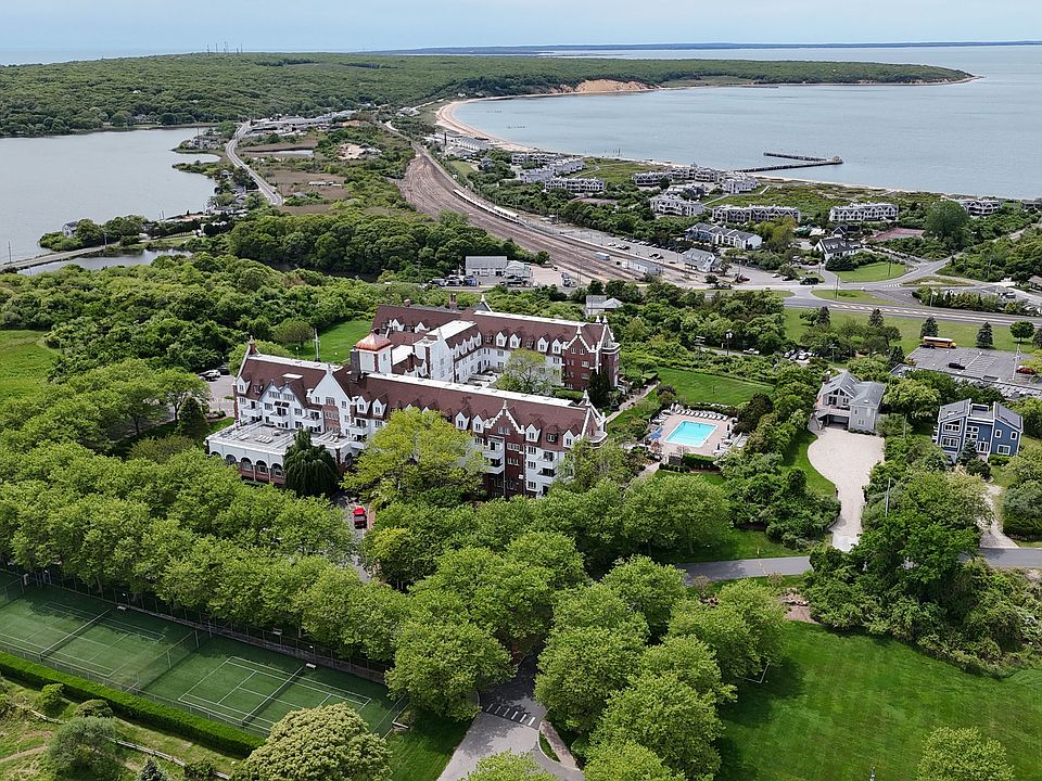 Welcome to 236 Edgemere Street, unit 421, a stunning oversized one-bedroom condo in the heart of Montauk. This residence offers breathtaking water views of Fort Pond Bay and the ocean, providing a tranquil retreat. The condo is part of Montauk Manor, a vibrant community that is open year-round.The condo boasts a newly renovated indoor pool, complete with lockers, showers, a jacuzzi, and a sauna. For those who enjoy the outdoors, a heated pool overlooking the serene bay is a perfect spot to unwind and take in the picturesque sunsets. Active lifestyle enthusiasts will appreciate the three tennis courts and pickleball area.The grand lobby, with its cozy fireplace, serves as a warm and inviting space for socializing or enjoying a quiet moment. Monte's Italian Restaurant, located on-site, offers breakfast, lunch, and dinner all year round, with the option of outdoor seating to enjoy the scenic surroundings.This pet-friendly complex also offers a shuttle service to your favorite Montauk locations, and hosts barbeques and outdoor activities for a lively community spirit. Experience the best of Montauk living at this beautiful condo.