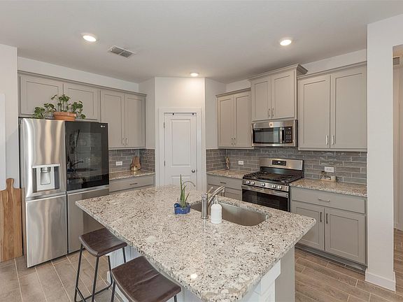 Experience the best of modern living in this exceptional 2023 single-story home, designed for comfort and versatility. Featuring 1,549 square feet of sophisticated main-level living, the layout includes 3 generous bedrooms, 2 full baths, a convenient dedicated tech center (home office), and a wonderful covered patio for outdoor enjoyment. Inside, the open-concept design is anchored by a gourmet kitchen—complete with a massive center island and a walk-in pantry—perfect for entertaining. Retire to the private primary suite, a luxurious retreat showcasing an indulgent, Texas-sized walk-in shower and an enormous closet. The true masterpiece of this property is the alley-loaded 2-car detached garage, which boasts an invaluable second-story studio apartment! This private 450 square feet bonus space, complete with its own full bath, is a game-changer—offering limitless potential as a professional home office, a private gym, an ideal guest suite, or a fantastic source of rental income.