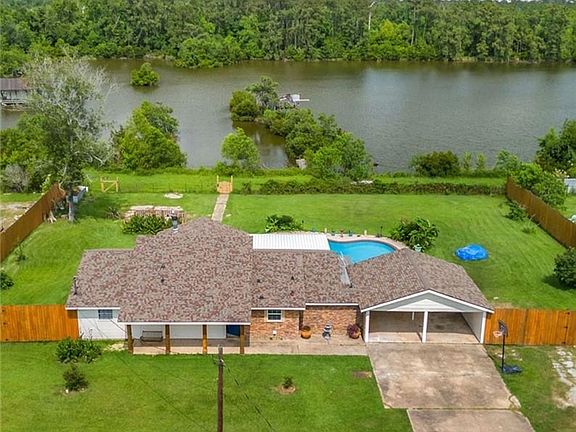 Relax this summer in this beautiful gunite pool with covered patio, large backyard and view of a large pond!!! This updated and move-in-ready 3 bed 2 bath home in Sulphur offers an open and split floor plan. This beautiful home offers a wood burning fireplace, granite countertops, chandeliers, and covered two car carport. The owners suite features a large bedroom with a large walk-in closet and bathroom with a large soaking tub. The walk-in closet is currently being used as a nursery alcove.The backyard is your own personal oasis complete with gunite pool, outdoor wood-burning fireplace, covered patio, view of a large beautiful pond, and privacy fenced. Home is in flood zone X we're flood insurance is not required. All measurements are m/l.