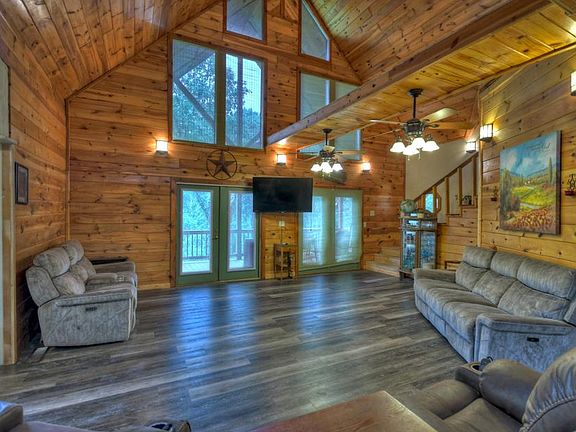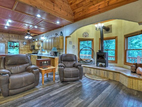 Spacious home nestled on estate sized lot for privacy, w/all paved access, 15 minutes to downtown Blue Ridge. 4+ bedrooms, 3 1/2 baths. Master suite on main, 1/2 bath on main, 2 guest bedrooms upstairs with full bath, Basement set up as separate 3/1 in-law apartment & subbasement for storage. Great room with soaring ceilings, open to the spacious country kitchen & dinning area. Walk in laundry room on main. Big wrap around covered porches on main and terrace levels. Peek of mountain view. Good flowing branch & beautiful winding driveway leading to the home. Massive Quonset Hut style garage with power & stubbed for a bath, & RV hook up. Koi pond, chicken coop, established landscaping w/fruit trees. Addtl' building site with soil work done for a 3 BR home. With a little sweat equity this will be an amazing home and gorgeous property with completely private setting. Motivated seller!