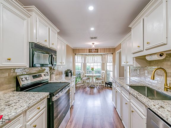 Located in the gated community of Norris Ferry Crossing, this 3 bedroom, 2 bath home delivers comfort, function, & convenience in one of South Shreveport’s most desirable areas. The single-story layout features a welcoming living room with a brick fireplace framed by arched windows, opening to a formal dining area ideal for gatherings or a flexible home office. The kitchen showcases granite countertops, white cabinetry, tile backsplash, & stainless appliances—including a 2025 refrigerator & stove plus a 2-year-old dishwasher. A sunny breakfast nook overlooks the backyard, creating a perfect space to start the day.