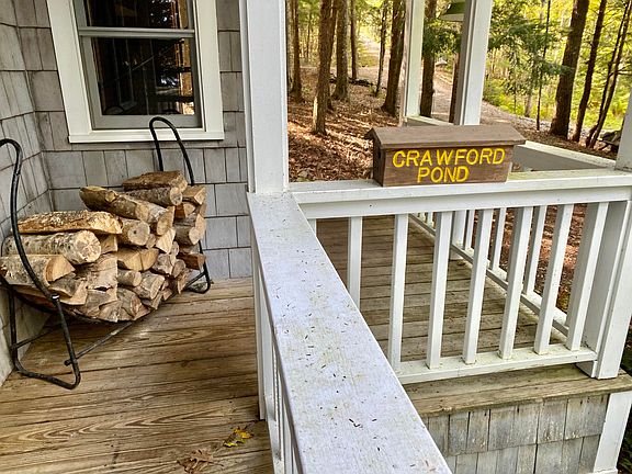 This one-of-a-kind and once in a lifetime offering on 15 mile long Crawford Pond provides a place for family & friends to get together in the summer season. Aluminum dock with boat lift for a 14' motor boat, grills, and 4 buildings on a one acre parcel with 210' frontage on the water.