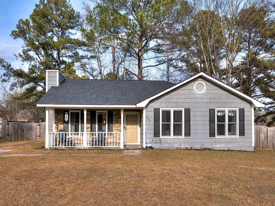 Welcome home to 236 Hunters Rd in Hopkins, SC! This 3-bedroom, 2-bathroom property features granite countertops, plenty of cabinet space, and a full suite of appliances to remain, including the stove, refrigerator, dishwasher, and microwave. The home also offers an additional den/living area, providing flexible space for a home office, playroom, or second living room. A covered welcoming front porch, and a private, fenced backyard—perfect for entertaining or relaxing. Conveniently located just minutes from I-77, Fort Jackson, local restaurants, and recreation facilities, this home offers comfort, functionality, and an ideal location.