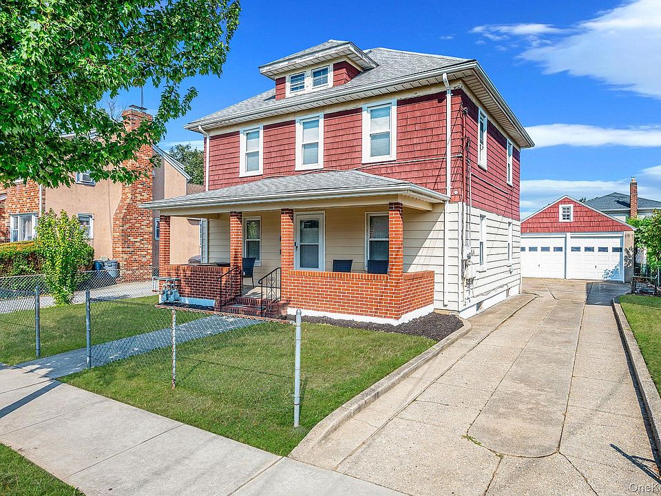 An exceptional opportunity awaits with this well maintained legal 2 Family Home located in the heart of Mineola, just a 2-minute drive or 10-minute walk to the Mineola LIRR station, offering a quick and convenient commute straight into Manhattan. The first-floor unit features 2 spacious bedrooms, a large eat-in kitchen, a bright living room, and a full bathroom. Perfect for comfortable living or strong rental potential. The second-floor unit also offers 2 bedrooms and 1 full bathroom, with a beautiful newer kitchen, large living room, and direct access to a generous attic space, ideal for additional storage. The full basement includes a shared washer/dryer area, plus a finished room that can be used as a home office, gym, or extra storage. With separate gas and electric meters, this home is perfectly set up for owner-occupants looking to offset costs or investors seeking dual rental income. Outside, the front of the home boasts a grand porch to relax on. The backyard has a detached 2 car garage with a loft storage area, and a long driveway with ample parking. The garage offers flexible options for storage, workshop use, or parking multiple vehicles.