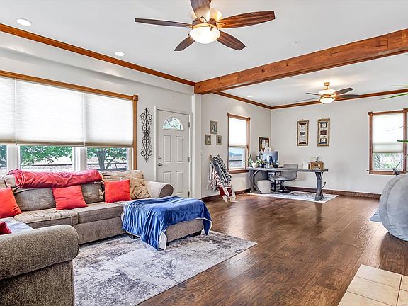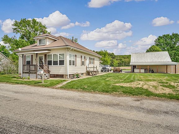 If you're searching for a country home with breathtaking views of the bluff, your search ends here! This charming 3-bedroom, 2-bathroom property, complete with an oversized garage, is sure to check every box! Upon entering, you'll notice luxury vinyl plank flooring and a spacious living area with a gas fireplace. The kitchen offers ample cabinet space, and a convenient door leads directly to the back deck. The main level features one bedroom and a full bathroom with a double vanity. Upstairs, you'll find two more generously sized bedrooms. The basement includes another full bathroom and a finished bonus room. Step outside onto the covered back deck to views of the bluffs! Additionally, there's a large oversized garage with a lean-to. Additional details:The adjacent lot is owned by the Village of Fults, the well was replaced in 2019, and the TVs and mounts are included with the home. Don't let this opportunity slip away to wake up every day to the stunning views that Fults has to offer!