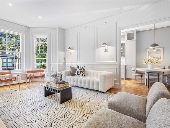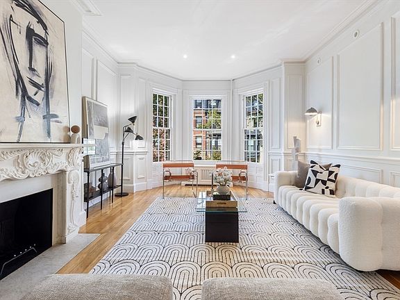 Discover elevated living on iconic Marlborough Street in the heart of Back Bay with this exceptionally renovated residence perched up on the second floor. This exquisite floor-through home offers towering almost 11' ceilings, elegant crown moldings and gleaming hardwood floors extending front to back, all bathed in natural light from oversized bay windows. The custom designer's kitchen is a culinary oasis boasting timeless finishes, premium quartz countertops, integrated appliances, a beverage cooler and a charming built-in breakfast nook. The lavish primary suite includes an ensuite bath and a versatile bonus space, perfect for a chic office or dressing room. A stylish guest bedroom with custom built-ins adds to the home's appeal. Central A/C, private storage and in-unit laundry complete the package. Located in the vibrant heart of Back Bay, just steps from the 'Quin House and premier amenities, this residence is more than a home—it's a statement of sophisticated living.