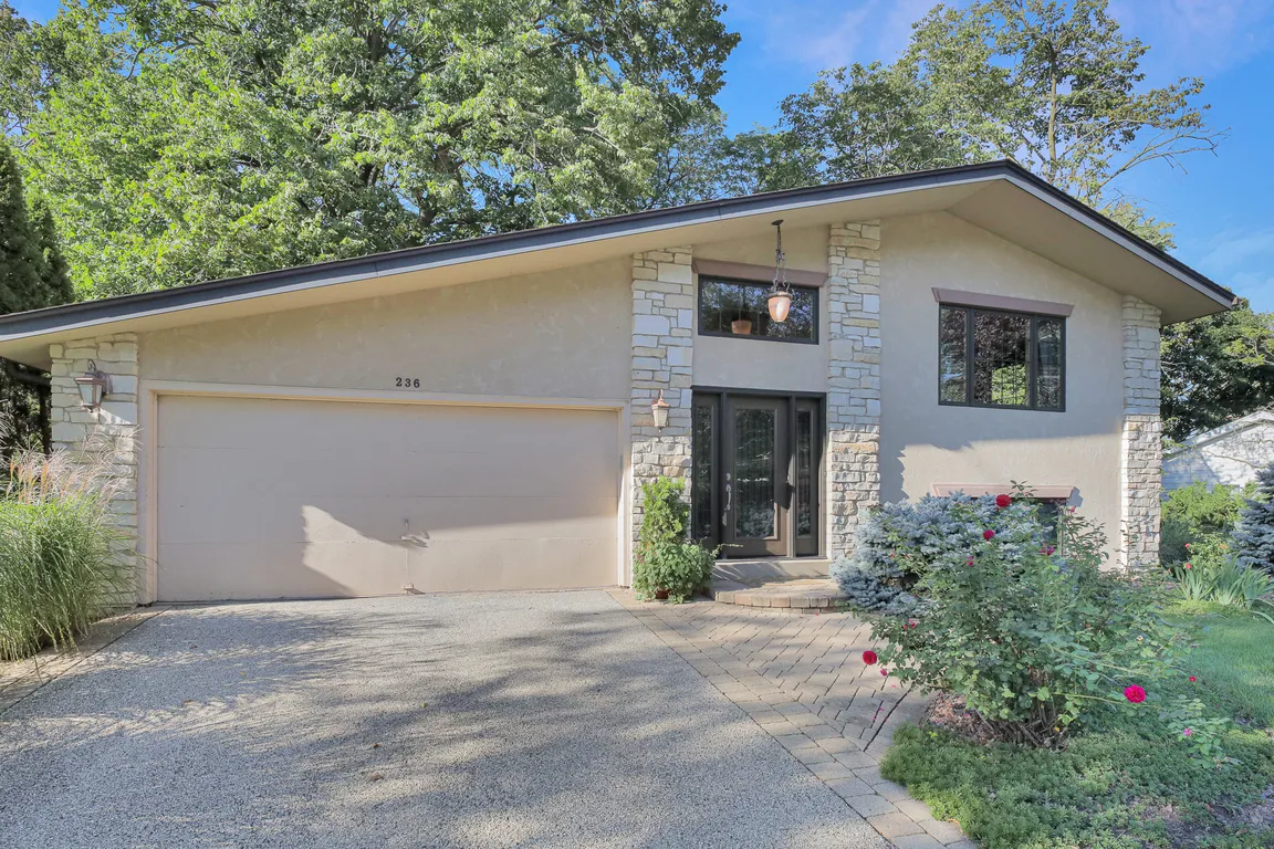 Stunningly landscaped double lotBeautifully renovated split-levelOutdoor deck speakersFresh paintExterior insulationStone accentsCustom oak-clad windows