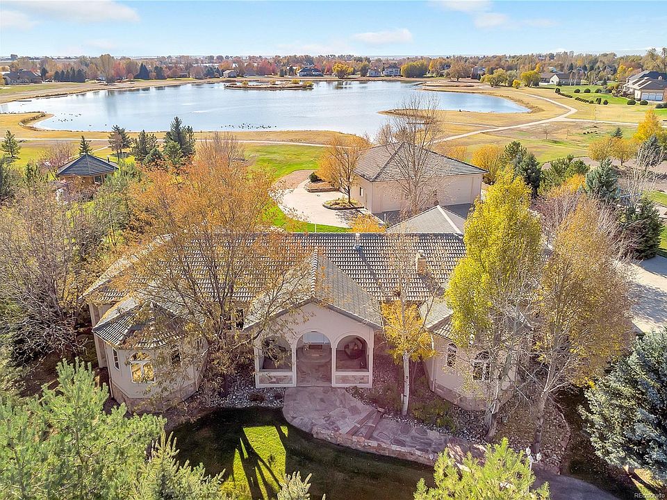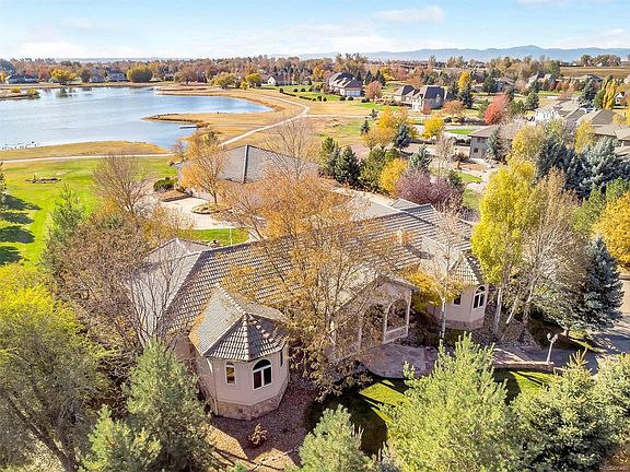 Car lovers dream! 50 x 50 full finished, heated & cooled detached garage w/bathroom & office loft! Expansive light filled lakefront ranch w/finished walk-out basement. All bedrooms have individual private bathroom areas. 3 + 2 car attached finished heated garages w/11 additional spaces in RV garage. Hardwood floors, granite/marble counter tops, lots of storage space with huge closets. Outdoor kitchen has granite counter tops, & BBQ, refrigerator and fire pit. The waterfall & flagstone patio make this the perfect location to watch the lake and beautiful sunsets on 1.56 beautifully landscaped acres with over 100 trees and plants. Trex decking, removable patio sails, large dog kennel, evaporative cooler (swamp) PLUS high efficiency AC, Instant hot water, central vacuum. Easy access to I-25 and only 35 minutes to Boulder, Denver or Ft. Collins. This home has it all! * Agent/Owner * *Quick Closing Preferred*