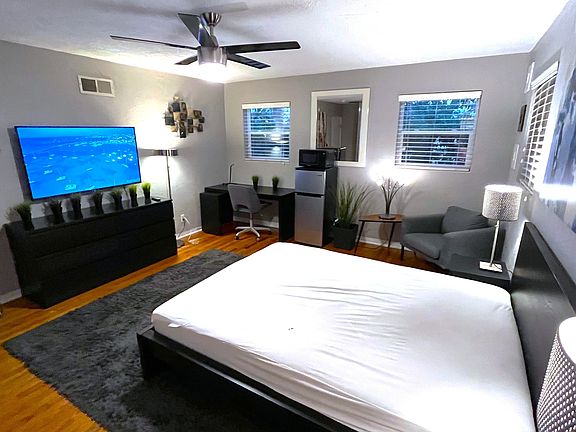 Huge master bedroom with private bath, in house a few miles from ERAU, DSC, BCU, and flight schools. Room is private and the rest of the house is shared, you will have full access to kitchen, living room, bathroom, and laundry. Room features: Large bathroom with separate tub and shower, 65" Roku smart TV, queen bed, computer desk, desk chair, sitting chair, personal refrigerator with microwave, and modern furniture. Fully furnished as shown in pictures and all utilities included in the rent. Common areas in the house are cleaned every three weeks by professional maid service. Room is for one person only, NO Pets, No Smoking, No Excessive Drinking, No Drugs, No Slobs and No Party People. You must be ok with keeping the house clean and picking up after yourself. If you are a messy person this is NOT the place for you. This is not a party house for having people over frequently. No more than one guest allowed over once per week. Month by month, move out anytime with 30 days notice. Reserv