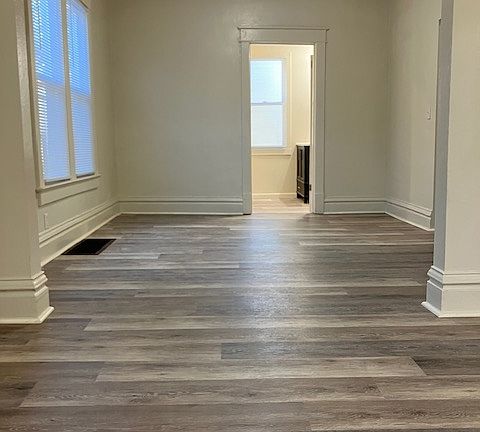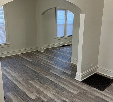 3 bedroom / 1 bath single family home for rent. Endless updates throughout including all new paint, new replacement windows, interior doors, kitchen cabinets, floor covering (vinyl planking throughout main level and carpet in bedrooms), updated bathroom with tub/shower combo, dining room, laundry room on main level, unfinished basement, front and back porch, and off street parking. NO PETS