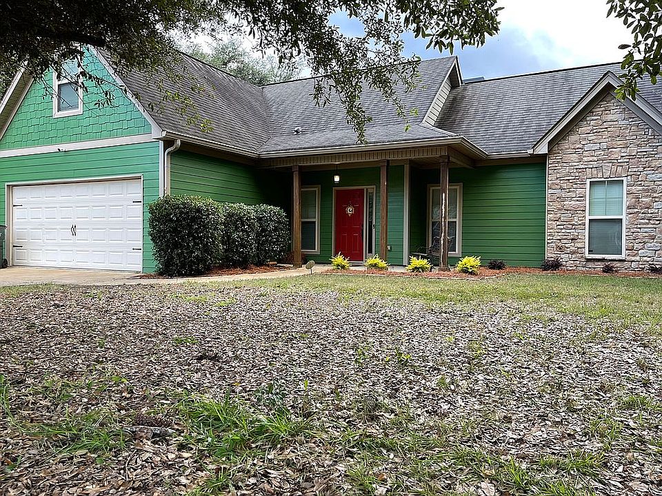This wonderful 4 bed/2ba home has one bedroom upstairs or could be used as a BONUS rm. SPLIT bedroom plan. Brand new carpet upstairs and in Master/2021. Large master bedroom - high vaulted ceiling, 2 walk in closets, soaking tub. HUGE backyard, backs up to tree line. Enjoy watching the stars, relaxing peacefully in quiet backyard. Very private, no looking into your neighbor’s yard!!! Yard extends beyond the fence. Storm door on back, level yard, shade from trees, Gutters, new Bryant thermostat. Just minutes from Fort Benning!!