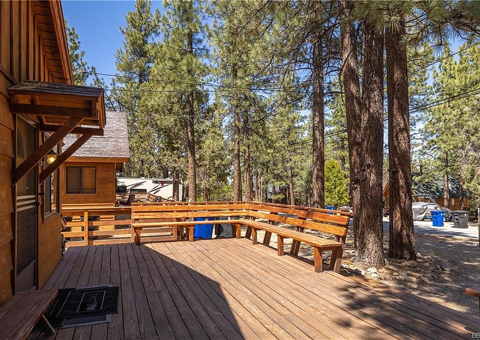 Woodsy chalet hosting a spacious 2 Bedroom, 1 Bath cabin with vaulted ceilings lined with T & G and wood beam accents. Beautifully remodeled kitchen offering new cabinets & granite countertops, remodeled bath with alluring full tile enclosure, new sink, cabinetry and new flooring throughout kitchen, bath, and living room. Central forced air heating and gorgeous native rock fireplace will keep your warm, washer/dryer hook ups, and a storage shed for all your seasonal items as you enjoy all four seasons. Roomy front deck with wrap around bench seating to enjoy your BBQ's, morning coffee, and relaxation.