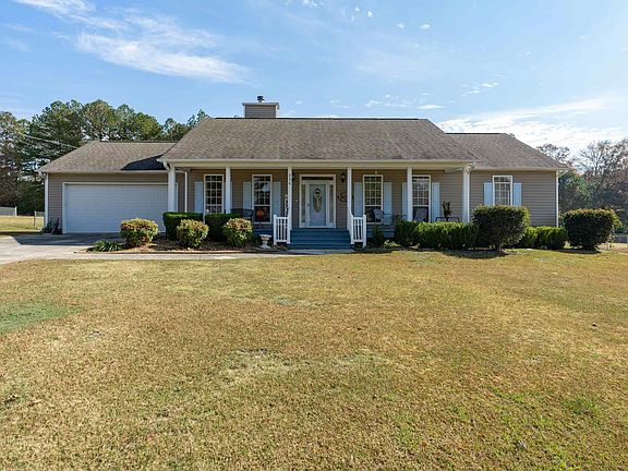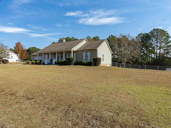 Welcome to coastal in the country. Enjoy the cool new paint colors throughout the home. This three bedroom, two bath home is all one level with LVP throughout and carpet in the bedrooms. Enjoy an open kitchen and dining room and gorgeous great room with large windows and gas starter, wood burning fire place. Enjoy your coffee own your choice of front or back large porch. Completely fenced in flat back yard with screen in porch perfect for autumn nights and football Saturdays. Storage building included for your outdoor tools. Two car garage and laundry room off the kitchen. This home is perfect for anyone and ready for new owners!