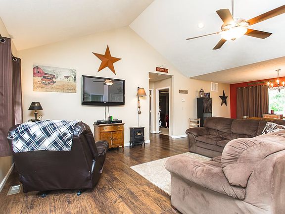 Enjoy convenient 1-level living in this awesome ranch with many great bonuses! Open floor plan hosts a roomy living area and dining area with rear porch access, open to the kitchen! Main level master suite with full bath! Two additional main level bedrooms, one currently used for storage, and a full hall bath! You're sure to love the home's in-law quarters, featuring a living area and bedroom with attached full bath! Front and rear porch, as well as a side patio off the In-Law quarters! Large, flat and open back yard with a storage shed, could suit many uses, including yard games, a pool, garage and more! Excellent location in a quiet neighborhood!