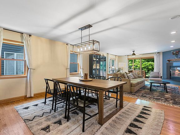 Honoring the beauty and charm of downtown Barrington, this welcoming, time-honored design offers abundant main-floor living. Upon entering the foyer, gleaming hardwood floors lead the way to a gorgeous staircase boasting wrought-iron spindles, and hardwood floors that introduce a phenomenal primary bedroom bathed in natural light while providing easy access to a beautiful master bathroom with jacuzzi tub, single vanity, and a generous walk-in closet. Off the foyer is a welcoming dining area complimenting the spacious family room, boasting a fireplace and remarkable views of the large backyard. The combined dining area leads the way to a spacious galley-style kitchen with new stainless steel appliances, white cabinets, quartz countertops, updated hardware, and a desk area to keep organized. Updated and stylish light fixtures compliment the decor throughout the home. Adjacent to the kitchen is a quiet sitting room that opens up to two additional main-floor bedrooms and a full bath, perfect for an in-law arrangement. The main floor also showcases a powder room and a separate laundry room off the mud room. The second floor is equally as impressive featuring two sprawling bedrooms with vaulted ceilings and skylights. The attached, tandem 4-car garage is finished with epoxy flooring and features an additional overhead door opening to the back. Conveniently control the lighting, and safety throughout the home with a phone app. Serene private yard encompasses a deck and fire-pit area. Near shops, restaurants, entertainment, Metra station, and grocery stores! Sold as-is.
