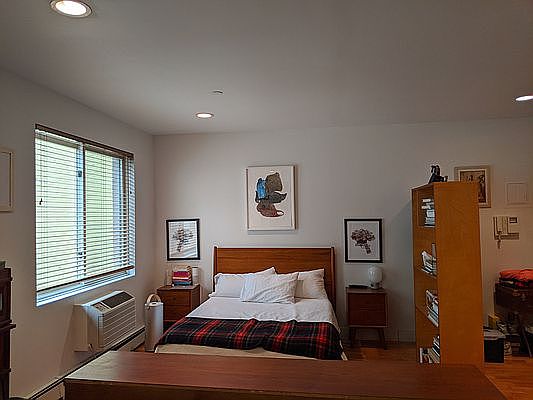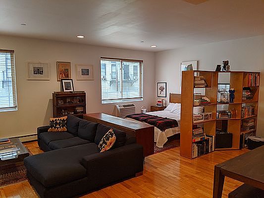 Large studio in the heart of Williamsburg for rent by owner. Walking distance to M and G train, restaurants, bars, and music venues. Grocery store on the same block. The building is mainly owner-occupied and well maintained. It has elevator and laundry in the building. Rooftop with BBQ and table&chairs to host. The room faces the courtyard so it's very quiet. Hardwood floor, plenty of sunlight. Has AC unit installed. The space is equivalent to one bedroom apartment. Chef's kitchen with dishwasher. 1 walking closet and another small closet for your storage need. Pets are allowed with an additional deposit. Tenant pays electricity, gas and internet. Move in date is Aug 1st, 2022.