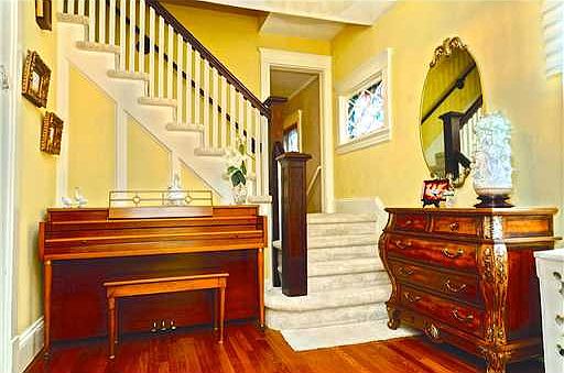 Home with a heart, features 4 bedrooms, master bedroom with newer carpet, 3 closets with storage and racks, ceiling fan, original crown molding, beautiful windows to add sunshine into this spacious room. Hardwood floors throughout, custom silk shades in living room, pockets doors, updated kitchen with auto close draws, SS appliances, deck and open front porch.