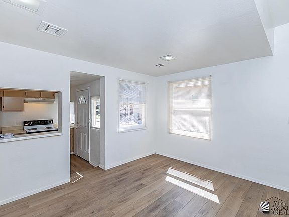 Cute one bedroom, one bathroom bungalow for rent in DOWNTOWN Yuma, , available immediately. Close to coffee shops, dining, local shopping, movie theater and other entertainment. Separate living room, kitchen, laundry room, bedroom and bathroom. Refrigerator included as courtesy. Washer and dryer hookups inside. No pets allowed. Call now!