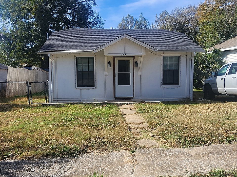 One bedroom, 1 bath, house with 1 car detached garage, window A/C, partially furnished