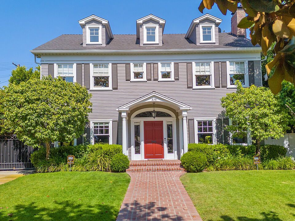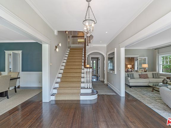 Beautiful East Coast Traditional on Coveted Irving Blvd in Prime Windsor Square. Welcome to this light-filled home that's been lovingly remodeled while keeping all its original charm. A graceful center hall with a sweeping staircase sets the tone as you step inside. To the right, a bright living room with a fireplace opens through French doors to a cozy den overlooking the yard, the perfect spot to relax, watch TV or read a book. A breakfast room connects to the fantastic cook's kitchen featuring high-end appliances, a large center island, tons of storage, and endless counter space. There's even a casual dining area and hangout space with views of the gardens. The back of the house opens to a large entertaining deck that's ideal for summer BBQs and family dinners. You'll also find a formal dining room, a small butler's pantry, and a stylish powder room on this level. Upstairs, the spacious primary suite sits quietly at the back of the house and includes a large walk-in closet, a spa-like bath with a steam shower, and a private roof deck with city and neighborhood views. Three additional bedrooms, two beautifully remodeled bathrooms, and a laundry room complete the second floor. The third floor offers a great bonus space perfect for a gym, playroom, or home office. Out back, the private, hedged yard feels like your own little retreat with a newer pool and spa, outdoor shower, and a great guest house for family and friends. All this just moments from Larchmont Village and everything Windsor Square has to offer. Square footage includes the main house, 3rd floor gym/office and guest house.