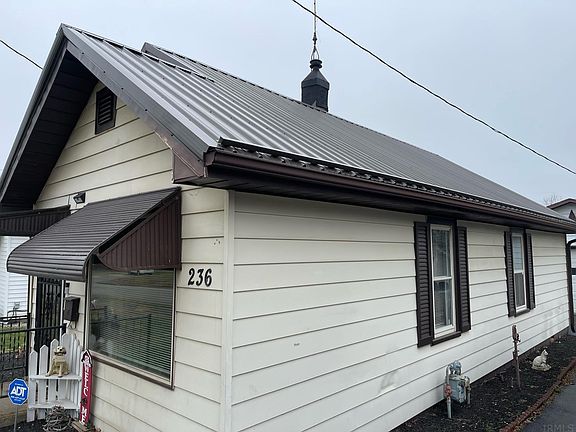 Adorable 2 bed, 1 bath doll house with a detached heated FOUR CAR garage with a half bathroom, perfect for extra space or make a business at home! 768 sq ft, open living/dining room concept. Great starter home, need to downsize, or need a one level home with very little upkeep. NEW metal roof. NEW Stainless Steel appliances, even nice washer dryer set! Large blacktop drive. Location is between Terre Haute and Evansville area, or a quick trip to Linton. Comes with one year home warranty! Home being sold as-is.