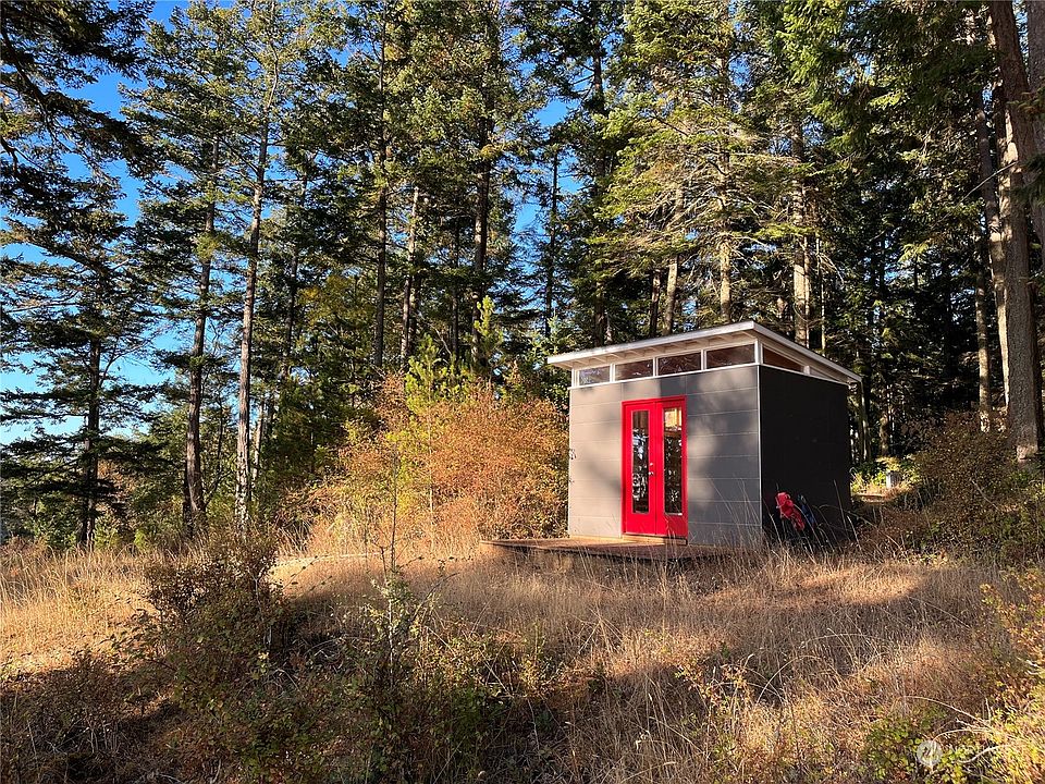 Feeling the need for some sunshine this winter? This southernly exposed lot is the perfect island oasis to cure any seasonal blues. Sit and soak in the stunning views of Mount Baker and the Strait of Juan de Fuca from this hillside perch. This 2.5 acre parcel is located in a unique four-lot community surrounded by 30 acres of conservancy land with trails meandering throughout. Includes two modern outbuildings. 8x12 with electricity and 4x8 tool shed. Septic design, and private well so bank financing is available. Access to lovely beaches, deep-water dock, airstrip and 10 acre waterfront park. Skip the ferry lines and take a 30 minute water taxi ride to this wonderful island property. HOA Dues $900/yr.