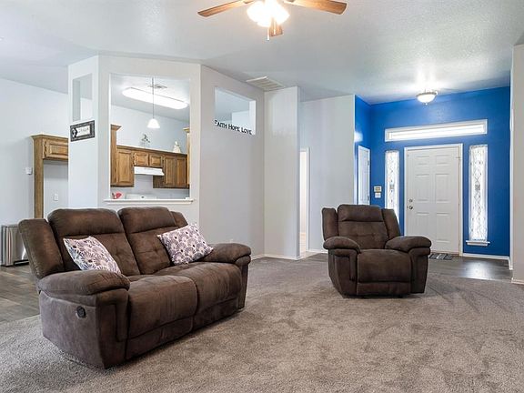 Have you been looking for a well-loved/move-in ready home? The wait is over, this is it. There is so much to mention about this property let's start with seamless guttering in 2021, you will absolutely love the gorgeous cedar pergola and patio area that was built in 2021, (note: extra rebar & 4 more inches of concrete were poured for a hot tub at the west end of patio) new windows in 2022, (Window World transferable warranty to buyer), new roof in 2023, composite storm shelter, (no rust with this shelter). The carpet and paint look brand new, LED lighting, Wi-Fi thermostat and garage door opener, extra-large Australian walk-in closet, pergola patio lights to remain, storage building for your yard equipment, and a community park/pond. Close proximity to all shops and restaurants plus you're in the Moore school district. This home is truly move in ready. You will not be disappointed when scheduling a visit, you just might want to call this one home.