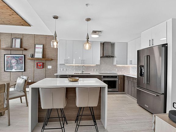 Live the downtown Delray lifestyle in this penthouse-level 1-bedroom condo at 236 Fifth, one of the area's most sought-after newer buildings. Enjoy ocean glimpses from your oversized private balcony and designer finishes throughout. The open-concept kitchen features a quartz waterfall island, two-tone cabinetry, mosaic backsplash, KitchenAid appliances, and a wine fridge. You'll have access to the Aloft hotel amenities including the resort-style pool, fitness center, restaurant, and bar, along with a private residents-only club room with wine lockers. Covered garage parking and private storage locker are included. With smart-key building access, concierge, and a prime location just two blocks from Atlantic Avenue and 1.1 miles from the beach, this is luxury living at its best.