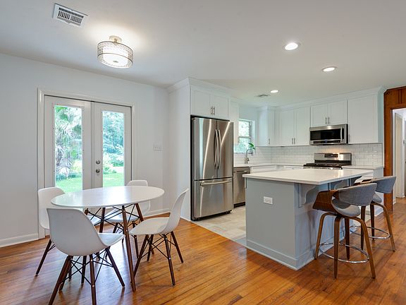 Contact Christie Orros, listing agent, at 850-321-2393 for questions and to schedule a showing // Longing for the convenience of that sought-after, newer open kitchen concept with new finishes, but in a close-in, established neighborhood? Look no further! Marvel at the completely fresh kitchen and full bathroom courtesy of Roberts Construction // Kitchen is completely open to dining and living areas and has white shaker cabinets, classic subway tile back splash, island with contrasting cabinet color, bar seating and stainless appliances // Gorgeous tile work in full bathroom's shower/tub combo // Enjoy the energy efficiency of natural gas powered air heat, stove and tankless water heater // No carpet here: Living and all bedrooms have original old-growth hardwood floors, kitchen and full bath has newer tile, master half bath has original vintage tile // Completely flat lot, privacy fenced backyard with green grass and mature trees