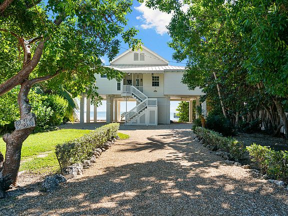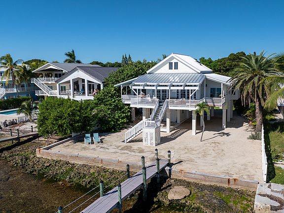 Oceanfront Retreat! Located in historical Tavernier, this property encapsulates true Florida Keys lifestyle. You'll be welcomed by breathtaking & endless ocean views when entering the 3 bedroom / 2.5 bathroom home. A living room & dining space curated for entertaining and embracing the one of a kind panorama of crystal blue waters. Watch morning sunrises from your private pier with deep water dockage for your boat. This home is full of charm - from the vaulted ceilings, french doors & thoughtful finishes. Other features include a walk in laundry room, downstairs storage, covered parking, veranda access from primary & guest room, impact windows and doors, metal roof, and great backyard. Unbeatable location - minutes from local coffee shops, grocery, hospital, shopping, gym & more.