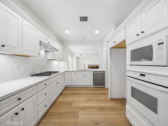 Gourmet kitchenCustom interior paintCrown moldingVinyl plank flooringCustom fitted window treatmentsGranite countertops and backsplash