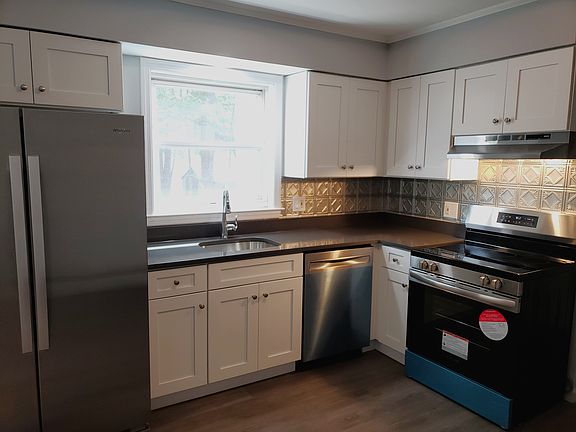 Very Pretty Maplewood Colonial is in South Huntington SD#13. All updated inside & out! Big Bright 4 Bedroom 2 full bath home with 1 car garage, wood floors and many large closets thru out. First floor entry foyer, archway into spacious Living room & Dining room w/ sliders out to the patio, Brand New EIKitchen, Den has a door so close it for private home office / Den w/ big closet + Brand New full bath. Second floor Brand New full bath w/ Skylight and 4 King/Qu/full Bedrooms. Basement with laundry hook up. New windows and siding. Tenant pays all utilities. Cat small/med dog considered. 1 or 2 year lease