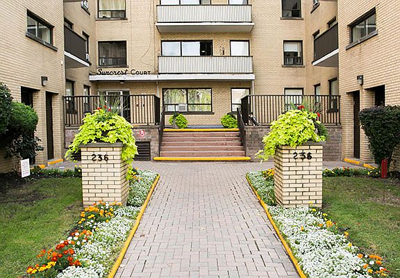 A cute, well-kept mid-rise building, Suncrest Court blends uptown with downtown. It's a great community. Spacious suites have ample storage space, underground parking, modern laundry facilities and on-site management. The neighbourhood enjoys a wide variety of businesses and services, with all of the necessities and 'nice-to-haves' in walking distance. Allen Road, Highway 401 and the St. Clair West Subway Station make this community very accessible, while new construction, revitalized stores and new businesses have this community growing steadily.