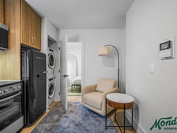 Welcome to 236 West 15th Street a beautifully renovated 1-bedroom, 1-bathroom home in the heart of Chelsea. This thoughtfully designed unit features a sleek, fully integrated kitchen with premium Smeg appliances, including a retro-style fridge and dishwasher, complemented by warm wood cabinetry and under-cabinet lighting.