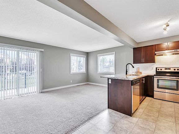 At the end of a quiet row of homes sits a bright and beautifully maintained 3-bedroom end-unit townhome, perfectly positioned with a west-facing front and an east-facing backyard to capture light throughout the day. Step inside and you’re greeted by a welcoming main floor, where sunlight pours into the open layout that connects the living room, dining area, and kitchen—an ideal space for both everyday living and entertaining. A convenient 2-piece bathroom and direct access to the attached garage add ease and functionality. Upstairs, the spacious primary bedroom becomes your retreat, complete with a walk-in closet and 3-piece ensuite. Just beyond the hallway, you’ll find a charming reading perch—a cozy spot for quiet moments—along with two additional bedrooms and a full bathroom, offering flexibility for family or guests. The unfinished basement offers endless potential, whether you imagine a home theatre, gym, or recreation room. Outside, enjoy the privacy of a greenbelt backyard, while the large shared pavilion at the front is perfect for neighborhood gatherings and community events. With an attached garage, parking is effortless. The location couldn’t be more convenient—walking distance to Captain Nichola Goddard School, zoned for North Trail High School with AP programs, and close to major shopping like Superstore and Home Depot. Vivo Rec Centre and Landmark Cinemas are also just minutes away. This home balances comfort, functionality, and location—ready to welcome its next chapter.