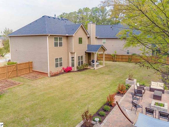 Exceptional Greer location and zoned for Eastside High School! Spacious Eastside 4 bedroom stone and brick home with fantastic, private and quiet outdoor space! Built in 2012 in a charming 15 home community that wraps around a lovely park, this home boasts a premium lot that’s fully fenced with mature trees, sprinkler system, patio, fire pit and garden area. Inside the home you will find upgrades galore with hardwood floors, granite, stainless steel appliances, and 10 foot ceilings (first floor.) The sellers have recently added so much to this home since their purchase such as tiling in the bathrooms, patio and landscaping, firepit, recessed LED lighting, blinds and ceiling fans. Valuable energy efficiency package and premium finishes throughout. Large, open kitchen plus formal living and dining rooms on the main floor. Upstairs are the 4 bedrooms, including the large master suite with 5-piece bath and the laundry room conveniently located nearby. Exceptionally clean and pet free home. Sought-after location with easy access to the I-85, convenient to shopping and dining as well as GE, BMW, Michelin.