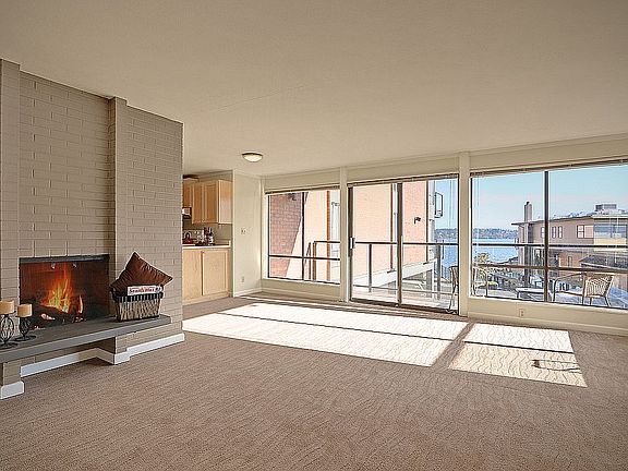Lake Washington views & Mid-Century Modern make this condo special! Enjoy a light filled space & huge windows with morning and afternoon sun exposure. Step outside on to the private deck for entertaining, grilling & enjoying the views. This unit has been recently updated with beautiful LVP woodgrain floors & a modern bathroom overhaul. Enjoy an idyllic layout with an open kitchen, living & dining area, lots of storage & a large primary bedroom walk-in closet. The complex features a private dock perfect for swimming or launching your kayak, an onsite manager, a waterfront/view gym and cable/broadband internet included. This Madison Park location is close to the beach park and popular restaurants & shops, downtown Seattle & the eastside!