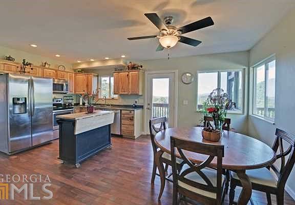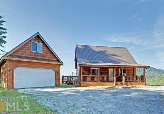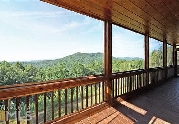 REDUCED KING of the MOUNTAIN!!! If you have been looking for that special "get away from it all" place in the Georgia Mountains...you have got to check out this cabin sitting on 22.42 AC bordering the USFS w/spectacular year round mountain views! Step out your door and it's just steps to the Pinhoti Trail. The cabin offers 3BRs/3.5BAs plus a bonus sleeping loft. The bright and open great room/kitchen/dining open to the covered screened porch overlooking the best views around. There's also a detached parking garage with large unfinished room above, a small hunting cabin and storage shed. Basement is not completely finished, however only needs the drop ceilings and floor covering. The cabin has been wired for a hot tub and sauna. The possibilities are endless!