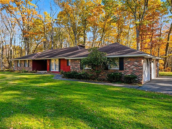 Nestled in a peaceful rural setting, this inviting 3-bedroom, 2-bath ranch offers the perfect blend of privacy, & natural beauty. Set on 5 picturesque acres, the property features a scenic creek that winds around 2/3 of the land, creating a serene backdrop for everyday living. Upon entry there are beautiful hardwood plank flooring leading into a spacious living room with a fireplace and patio doors out to the sunroom. Ideal for gatherings or quiet evenings at home, the step-down family room has a fireplace & patio doors that also open to the enclosed sunroom. The primary suite includes a full bath with walk-in shower. The kitchen is spacious & has ample counter space, breakfast bar, appliances, and a see through to the family room. There is main floor laundry off the kitchen, well and septic, hot water heat & central air.