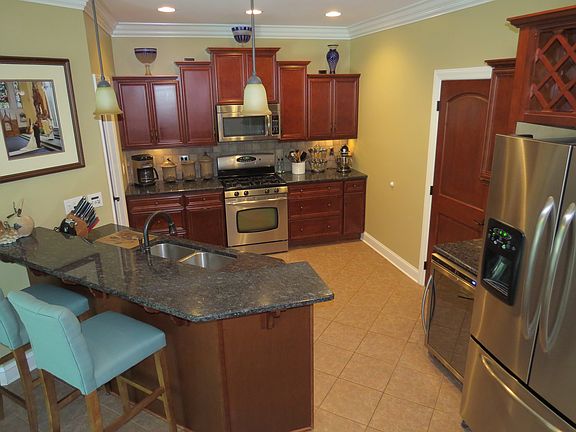 Grand home situated on a large wooded backdrop lot on a cul-de-sac street. First floor master suite with walk in closet, spa bath, walk in tile and glass shower with seat. The Gourmet kitchen is a culinary hub, with granite counters, center island with sink, built in wine rack, beverage fridge and custom cabinets. The full finished walk out basement with French doors leading to an outdoor covered patio offers additional living area with a kitchenette, recreation room and media room. HSA WARRANTY