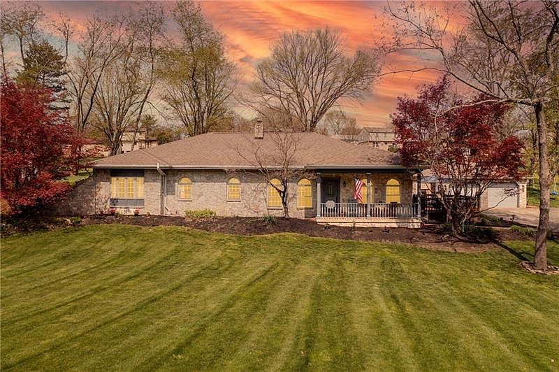 Gorgeous stone ranch home set on 3.6 acres of private wooded paradise! Completely renovated open eat-in kitchen, which overlooks sunken living room, is only the beginning of the amazing features which set this home apart. Beautiful new flooring and light fixtures, plus stunning skylights can be found throughout the home. Spacious family room has wood-plank vaulted ceiling, wood-burning fireplace and private access to 4th bedroom. Beautifully updated mudroom provides abundant storage and convenient laundry station. Magnificent executive-style home office features oversized desk, as well as built-in shelving and cabinetry for optimal efficiency. Spend summer nights on the side deck with friends and family enjoying your peaceful outdoor oasis. Separate outbuilding is every man or woman's dream - features huge, newly finished man cave or she shed w small kitchenette, plus attached 30' deep stalls and a mechanical engine lift! Not into cars? Stalls also provide ideal storage or gym space!