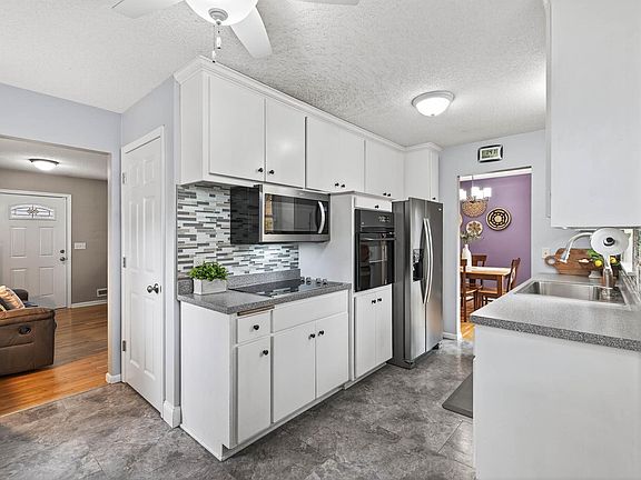 The living room, dining room, and main floor bedrooms all have beautiful hardwood floors. You will appreciate the updated bathrooms, and sun-filled spaces. The dining room opens to a new Pella sliding glass door with internal shades, leading to a large patio perfect for outdoor dining, campfires, or summer gatherings.