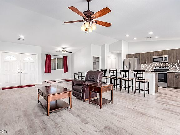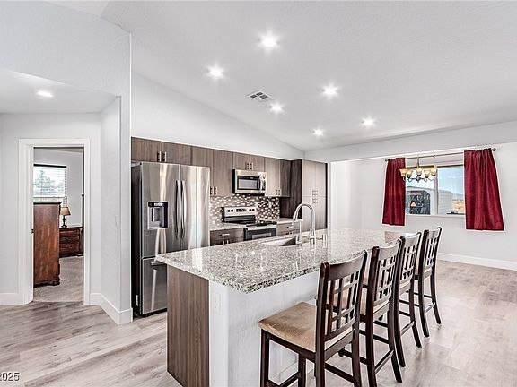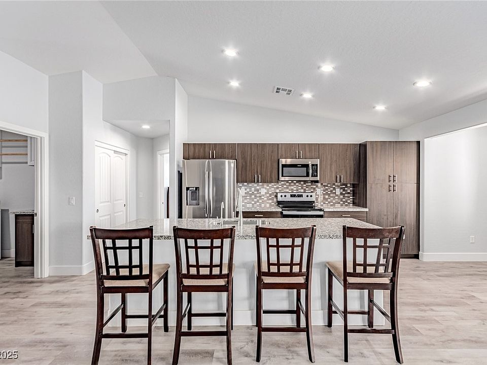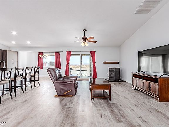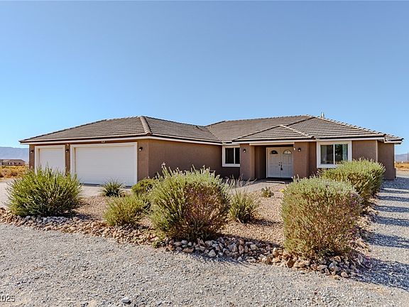 Most upgraded finishes come standard in this beautiful home located on over a ½-acre lot in Pahrump, NV. Enjoy solid-surface flooring throughout the main living areas, gorgeous customized cabinetry in both the kitchen and bathrooms, and granite countertops accented by a glass mosaic backsplash. Both bathrooms feature dual vanities, while the primary suite offers a huge walk-in shower, jetted Jacuzzi tub, and dedicated makeup counter. Additional highlights include elegant pendant lighting, well thought out laundry room, pellet stove and a spacious 3-car garage. This home combines luxury, comfort, and functionality in one impressive package.